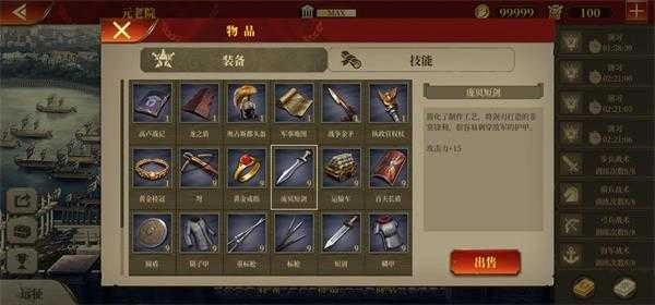 军事地图是件强度高又划算的装备,前期可以根据实际情况,给斯巴达克斯、维钦托利这类机动性较差的将领购买。