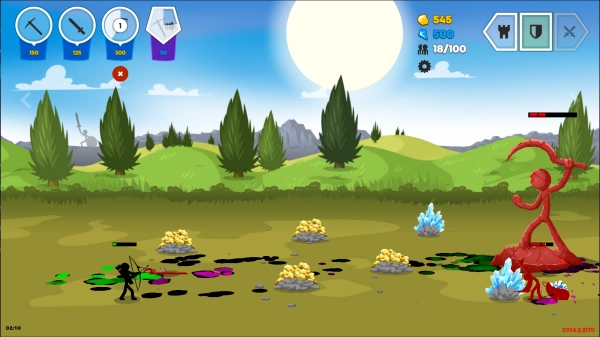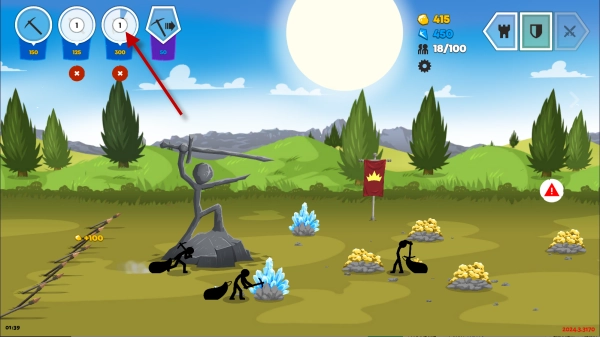 火柴人具备三种不同的待机状态,能借助右上方的控制面板来切换,这三种状态分别是防御模式、挖矿模式和进攻模式。