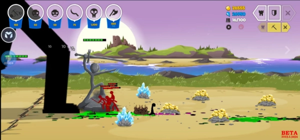 积累一定资源后,即可召唤具有战斗力的火柴人待命。