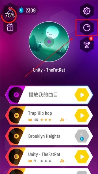 安装音跃球球,任意点击一首歌曲进入游戏;