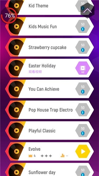 当然啦,要是玩家们想挑战其他歌曲,只需下滑就能开启挑战啦;
