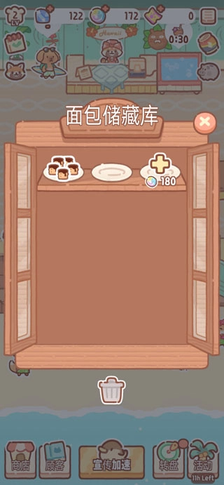 点击面包店的“面包储藏柜”,这里会展示已制作完成的甜品面包,点击即可进行放置操作。
