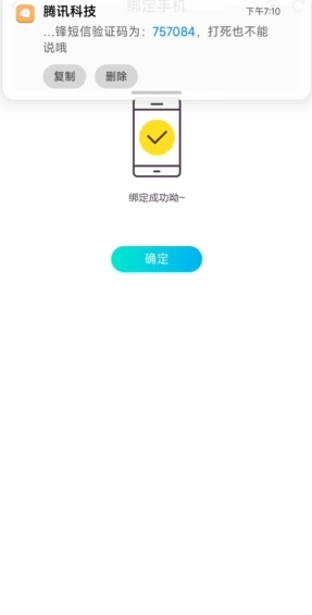 然后绑定手机,接收验证码