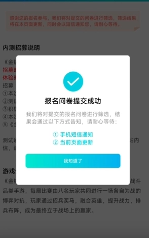 提交问卷,然后等待手机短信通知。