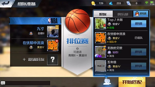 当等级达到开启排位赛的要求后,我们可以先设定一个初期想要达成的目标段位,借助段位对应的奖励来增强自己冲击更高段位的动力。排位赛里经常会碰到组队开黑的对手,他们之间传球配合默契,进攻节奏十分顺畅,所以在开始排位赛之前,我们也可以邀请几位在线的好友一起组队。不过要注意,受段位限制的影响,只能邀请段位相邻的好友组队。