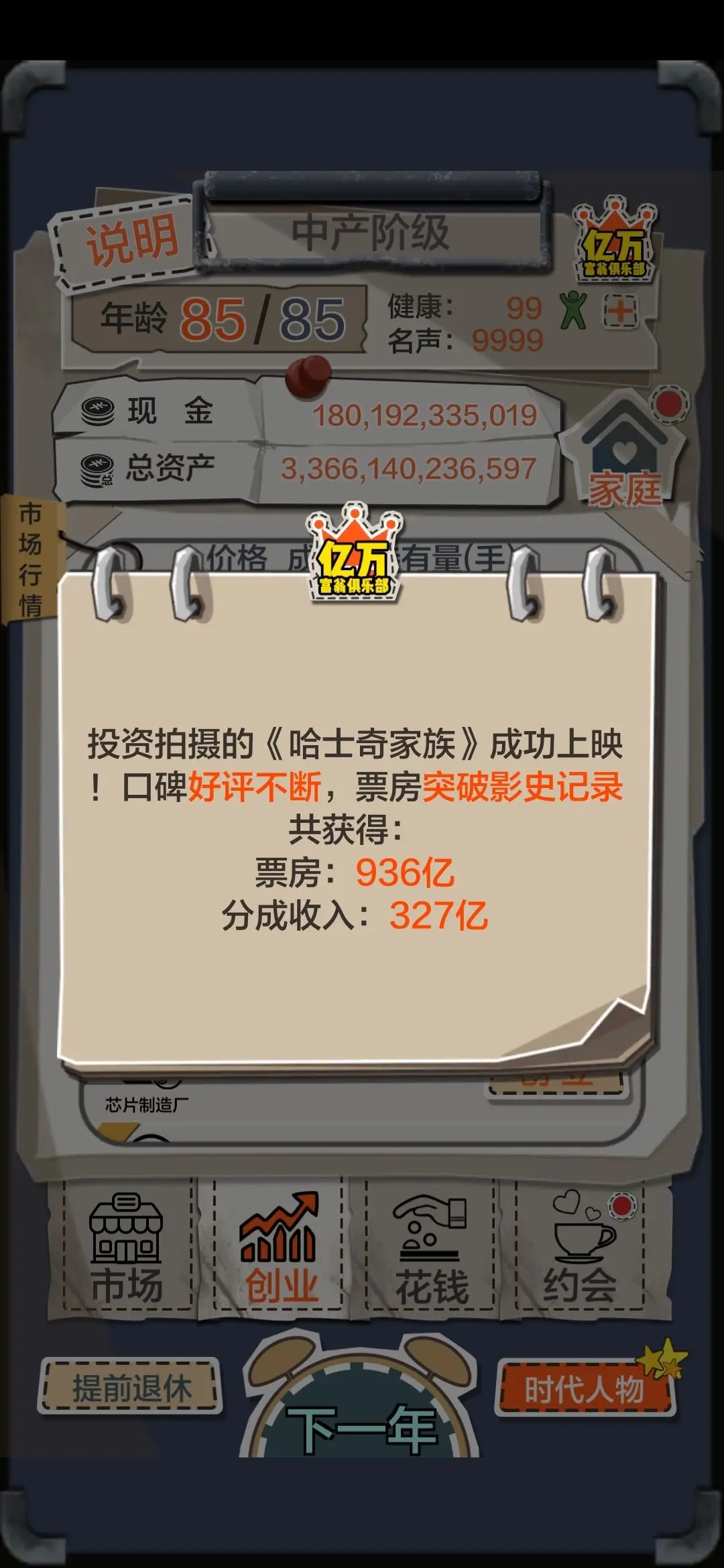 《一亿小目标》是一款休闲模拟经营游戏,在这里你将开启全新人生——重回20岁的你,决心这一世要达成赚够一亿的目标,成为真正的成功人士。在安卓版本中,玩家能通过倒卖比特币、创办公司、开启直播等多种方式,朝着“一亿小目标”努力赚钱。