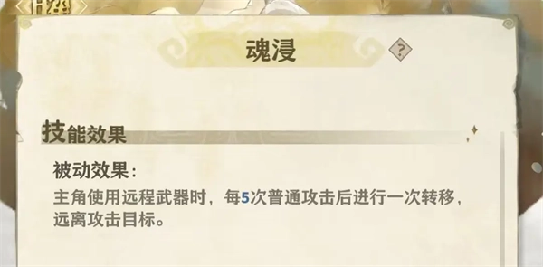 主角在使用远程武器的过程中,每完成5次普通攻击,就会执行一次转移操作,以此拉开与攻击目标之间的距离。