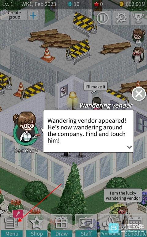 首先玩家进入游戏,点击左下角的菜单按钮(即下图中红色箭头所指的位置)