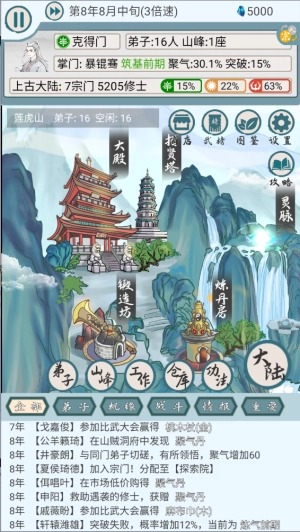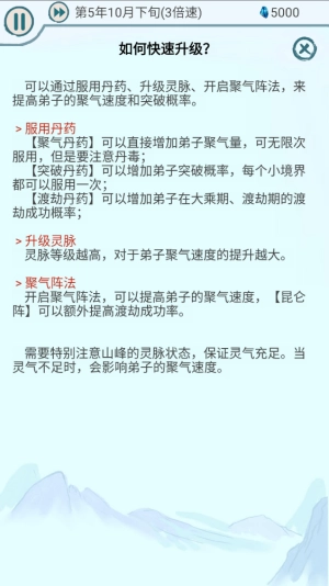 升级灵脉:灵脉的等级越高,对弟子聚气速度的提升效果就越显著。