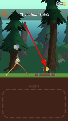 2、本关卡的目标是抵达第二个检查点。你需要操控角色踩着高跷,在移动过程中避开沿途的各种障碍,朝着箭头所指的检查点前进。一旦成功到达,就能推进至下一关,并获得金币奖励。