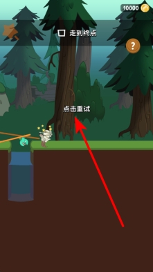 3、若角色在前往终点的途中摔倒,界面会弹出点击重试的提示,点击该按钮即可重新开启当前关卡的挑战,此时可以调整操作方式,争取顺利走到终点完成通关。