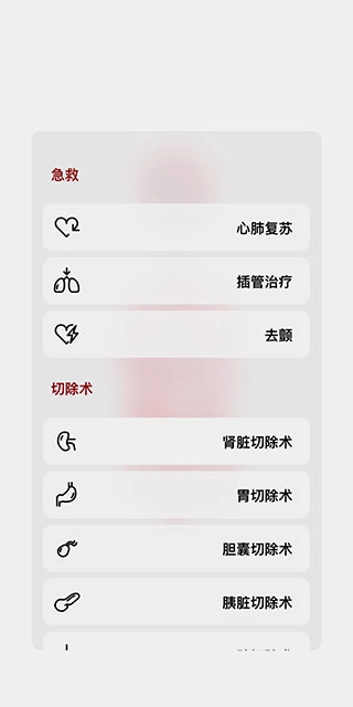 11、点击右下角的手术刀图标,可以为模型进行相应的治疗措施,其中包括了急救术和切除术等。