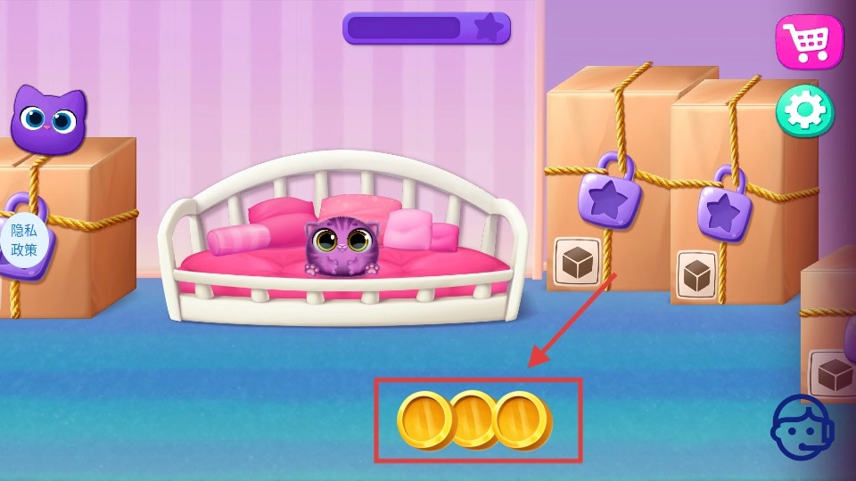 收集金币用于解锁道具升级小屋