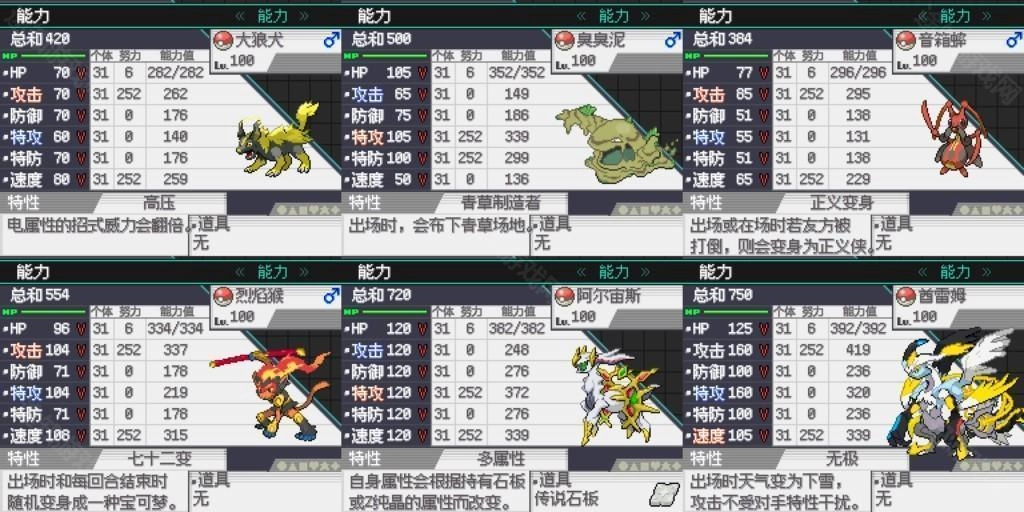 包含《宝可梦剑·盾》的所有特性、部分《宝可梦传说:阿尔宙斯》的特性,以及部分原创特性。