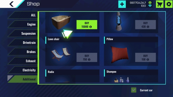 走进商店,挑选洗车所需的工具,这款游戏的功能已经解锁啦,大家可以尽情选购!
