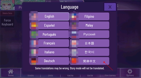 进入游戏内的设置选项(options)页面,找到语言设置(language)