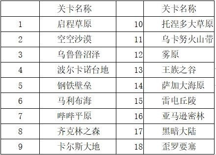 游戏里总共有18个关卡呢~关卡的名称就像下面这张图显示的一样,希望小伙伴们进入游戏后能踊跃去探索呀~