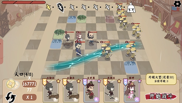 每个回合棋盘都会在昼夜模式之间切换,部分武将的技能效果会随着昼夜的变化而改变(例如夜间时谋士的输出会得到增强),因此需要灵活地调整战术。