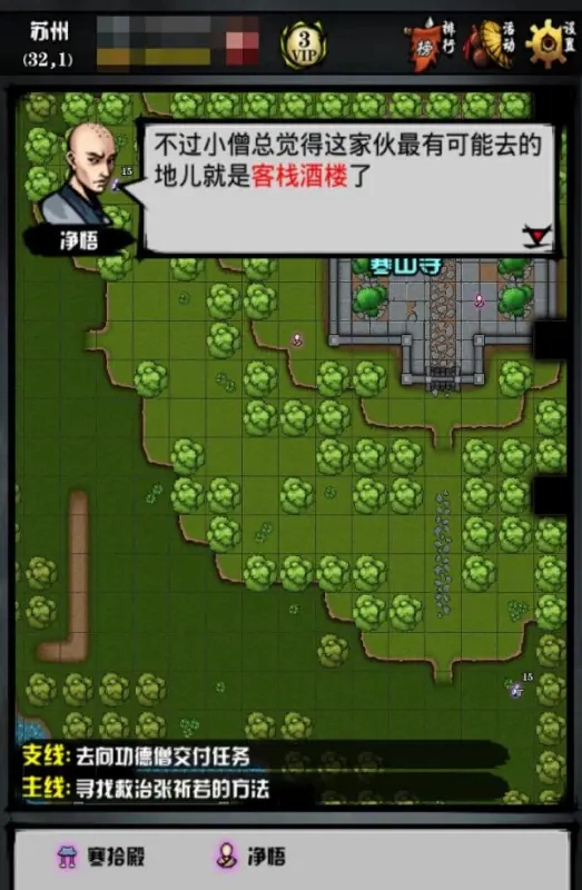 抵达洛阳后,前往坐标为(12,13)的太白酒楼地字号客房,点击搜索功能,就能找到处于昏迷状态的净克。