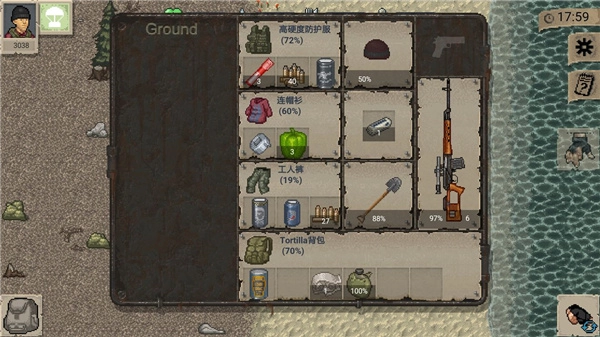 抵达三岛后,我依旧决定先去探索军营。不过在返回的路上,口渴得快要受不了了,于是中途拐去医院拿了四环素。之后检查了一下随身装备,便继续前往下一个军营。
