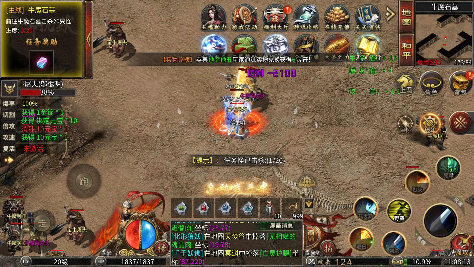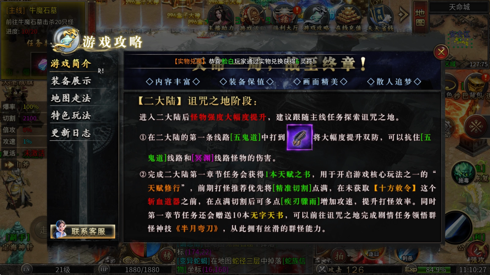 第一章节的任务还会额外赠送10本无字天书,拿到后可以去诅咒之地做剧情任务,就能领悟群怪神技《半月弯刀》,之后群怪就会变得特别丝滑顺畅。