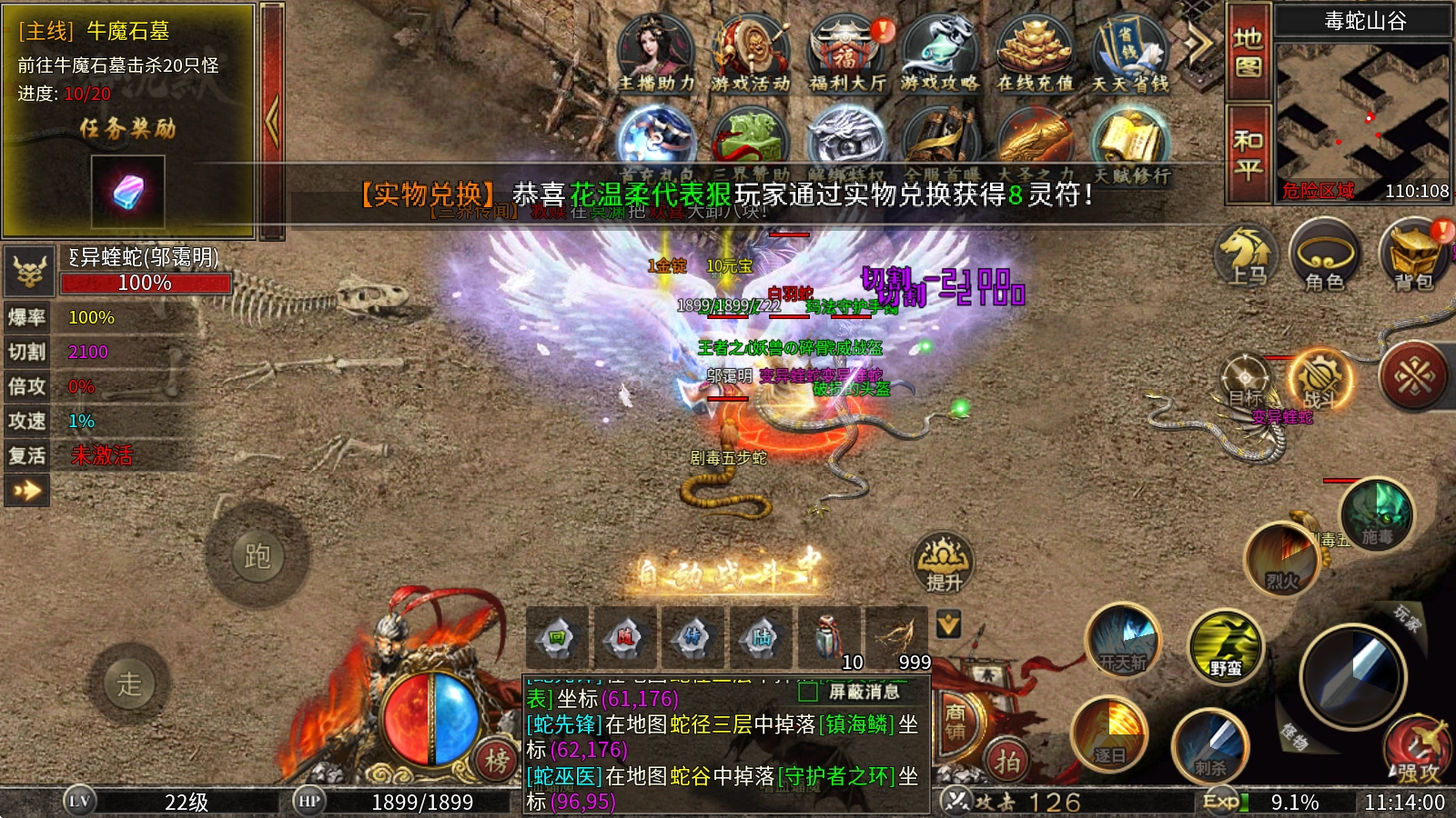 建议在这个系列地图里多刷蛇族信物、镇海鳞和潮汐密匙这三种道具,在蛇谷底层能用这三样道具召唤蛇人族神兽万蛇,万蛇产出的【称号:万毒经】十分关键,它是挑战黑风妖圣的必备道具,要是你想获得15%的切割总值提升,就一定要拿到它!