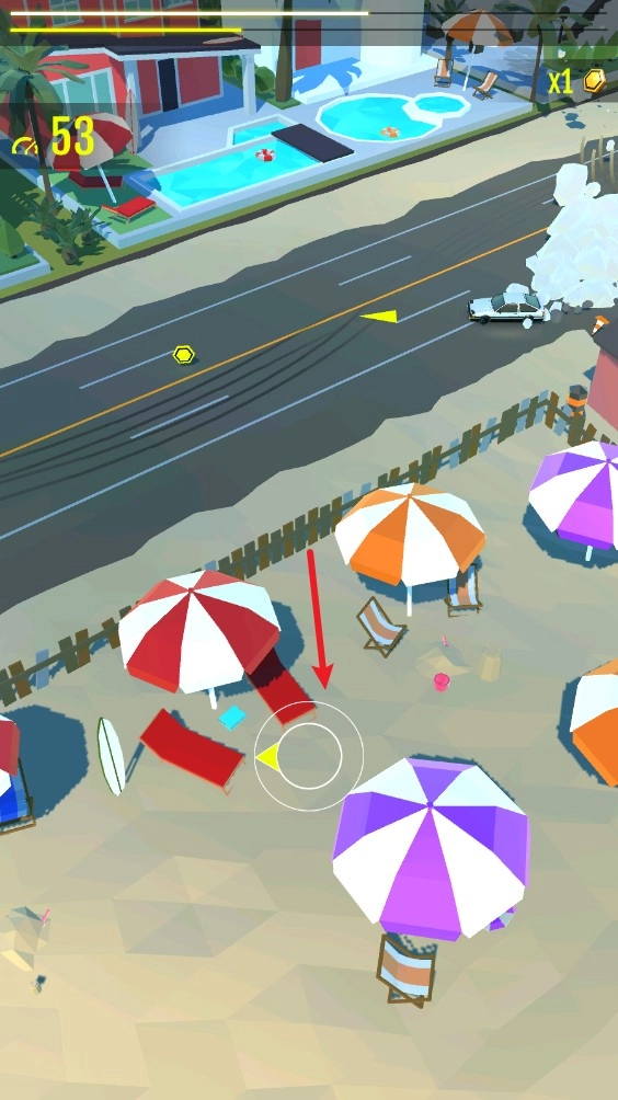 进入场景后,通过滑动屏幕来控制车辆的方向。