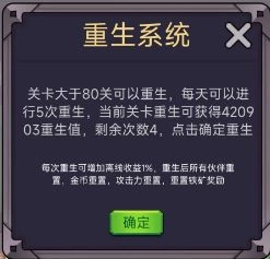 目前每日有5次重生机会,每次重生都能重置关卡的矿石奖励。根据自己的游戏时间合理安排这5次重生,是积累更多资源的关键途径。不过这需要结合个人情况,分配方式多种多样,所以暂时不提供固定的具体方法,大家可以通过加群来咨询相关内容。