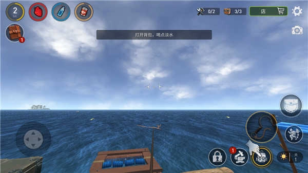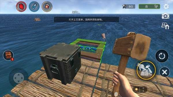 一开始资源比较匮乏,得靠钩爪来收集资源,偶尔还会碰到一些小岛屿,这时候用船锚把木筏固定住,造一把斧头就能登岛采集更多物资了。等后面能力提升、实力变强后,还能给木筏装上捕网类的道具,这样在海上就能更轻松地被动获取资源了。