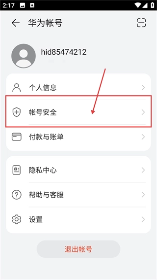 进入华为帐号页面后,点击【帐号安全】选项,即可进入安全设置界面,处理密码等安全相关内容。