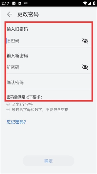 进入密码修改页面后,按照提示依次输入旧密码、新密码并进行确认,只要符合密码设置规则,就能顺利完成密码修改操作啦。