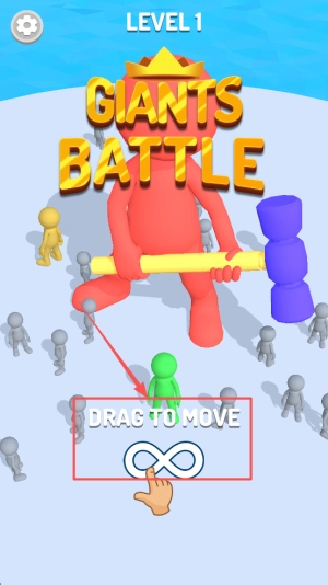 3、开始游戏:进入关卡界面后,先查看目标要求,接着按住界面上的“DRAG TO MOVE”提示区域,拖动巨人即可开启战斗。