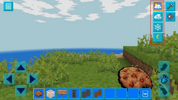 3、点击界面右上方的天气图标,即可对这个世界的气象进行调整,像闪电、雪花、下雨等效果都能实现,为你带来近乎真实的沉浸式体验。