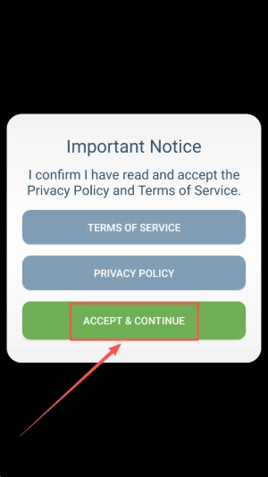 1、进入游戏:首先打开游戏主界面,阅读相关条款后点击“ACCEPT&CONTINUE”按钮,就能直接进入主菜单。