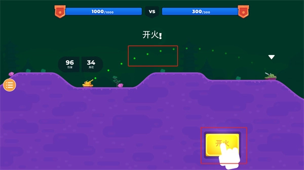 右下角的虚拟摇杆则用于改变坦克的发射轨迹