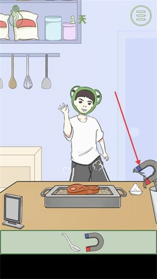 3、在关卡场景里,利用已获取的道具(像磁铁这类)与场景中的物品(例如烤盘)进行互动,完成相应的关卡任务,推动游戏进程从而满足通关要求。