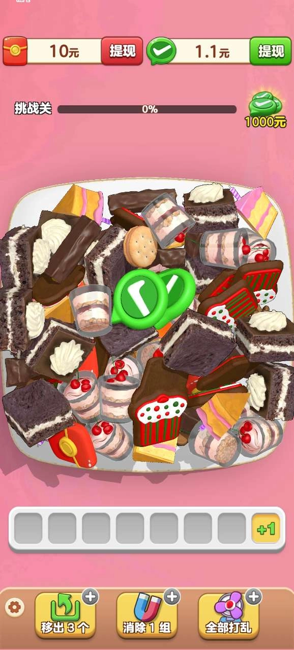 玩家能够借助道具来获得帮助,像“移出”这类道具,就可以把3个物体从格子里移出去,放置到暂存栏中。