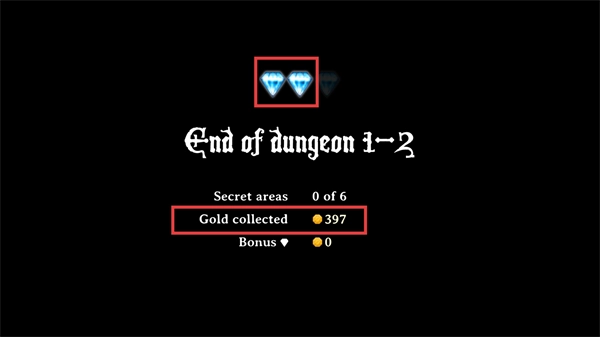 4、完成【dungeon-1-2】关卡挑战后,能得到【397】金币和钻石作为奖励,之后还可以探索更多隐藏区域来增加收益。