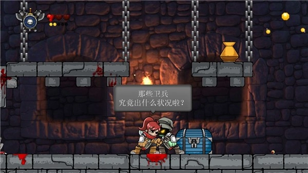 用小刀破坏下方的木箱后就能跳上去,接着往左上方向跳跃,去拾取前方的金子。