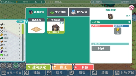 点击建筑图标可挑选想建造的建筑类型,选好设施后点击“建筑确定”按钮,接着选定建造位置并点击确认符号,即可完成修建操作。