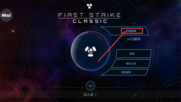 1、进入【FIRST-STRIKE-CLASSIC】界面后,点击已解锁2个的【开始游戏】,接着选择【加入战!】进入对局。