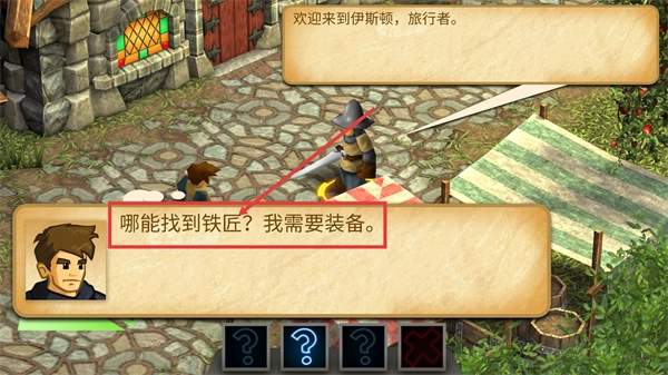 1、进入伊斯顿后,若想获取装备,可向NPC询问“哪里能找到铁匠?我需要装备”,通过这种方式获得关键指引,从而推进流程进展。
