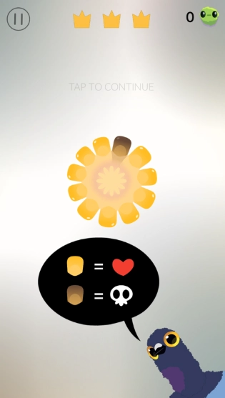3、进入游戏如图,玩家需点击屏幕来控制鸽子啄玉米,啄到坏的玉米则失败;