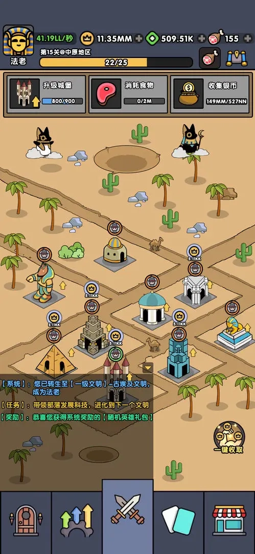 游戏前期,玩家需把重心放在完成建筑相关任务上。这类任务涵盖单个建筑等级提升、建筑总等级达标、金币收集以及知识点收集等多个方面。为了降低卡关的概率,建议先着手完成像知识点收集这类非建筑等级类的任务,这样能为之后的游戏推进铺垫更顺畅的路径。