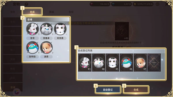 ●点击合成页签,能展示当前可作为合成材料的宠物及其数量。您背包里的宠物会被添加至合成列表中;