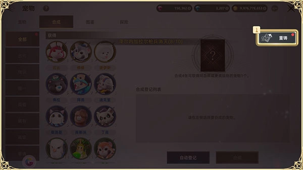当宠物合成产生英雄级或更高品质的宠物时,可选择进行宠物重铸操作。