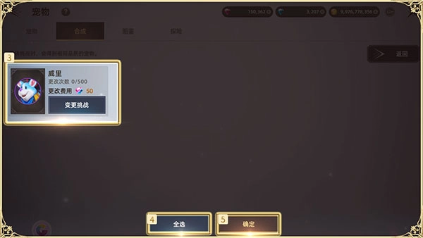 ●每个宠物的变更次数上限为5次,每次变更操作都会消耗钻石。随着您变更次数的增加,所需消耗的钻石数量也会相应递增。