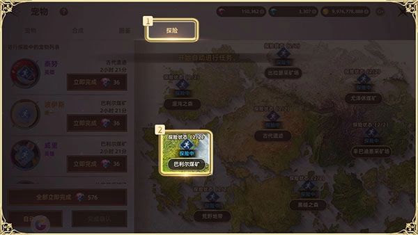 ●您能够查看宠物当前的探索状态,还可以消耗钻石来立即结束探索进程。