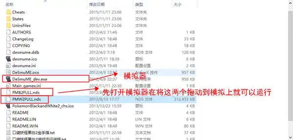 2、点击模拟器上的“文件”、“打开ROM”,选择目录下的PMB2FULL.nds(为口袋妖怪黑2)或PMW2FULL.nds(为口袋妖怪白2)
