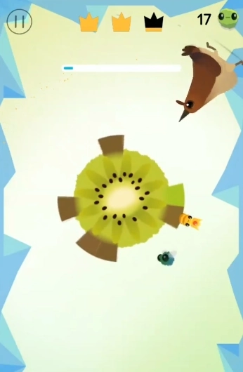 15、十五关到十八关就是吃奇异果,需要掌握节奏,而且会越转越快,一定要把握节奏快速啄下去。